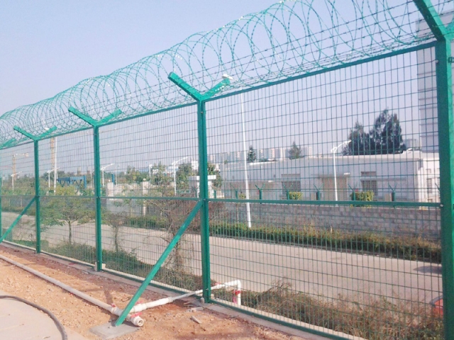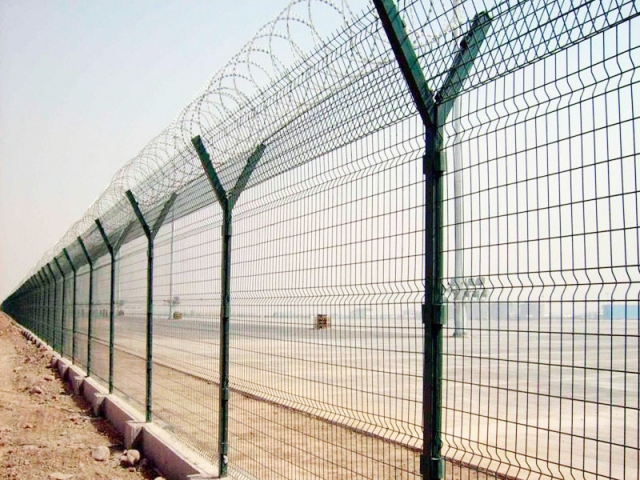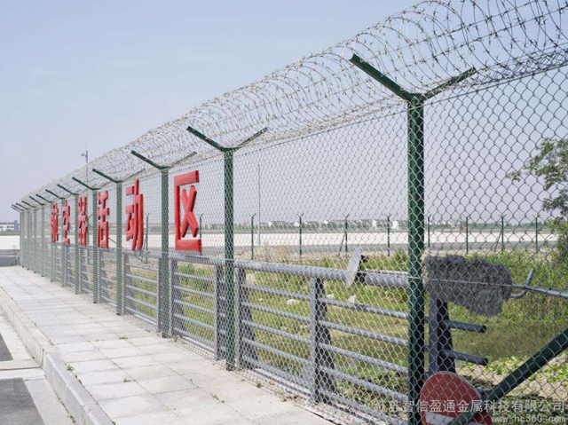 機(jī)場圍界就是應(yīng)用于機(jī)場跑道兩側(cè)的隔離網(wǎng),作用是防止行人誤入跑道,影響飛機(jī)正常運(yùn)行的有效措施。這個機(jī)場圍界也分為機(jī)場內(nèi)隔離與機(jī)場外隔離,機(jī)場內(nèi)隔離的要求更高,頂部設(shè)置刀刺網(wǎng),外隔離就比較簡單一些,主要還是防止閑雜或者違法人員進(jìn)入飛行禁區(qū),盡管這雙重保護(hù)之下,還是會有人進(jìn)行每天巡邏,以防止個別情況發(fā)生。機(jī)場圍界廣泛應(yīng)用于各大飛機(jī)場的邊界,用作邊界圍欄防護(hù)網(wǎng),還可以用于港口圍界防護(hù)、碼頭鋼絲防護(hù)網(wǎng)、飛機(jī)場防護(hù)護(hù)欄網(wǎng)、Y型安全防御護(hù)網(wǎng),也可以用于公園、動物園、賓館酒店、市政道路等領(lǐng)地周邊的安全防護(hù)圍網(wǎng)。